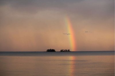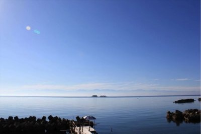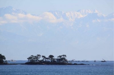 目の前に広がる虻が島と雄大な立山連峰の絶景